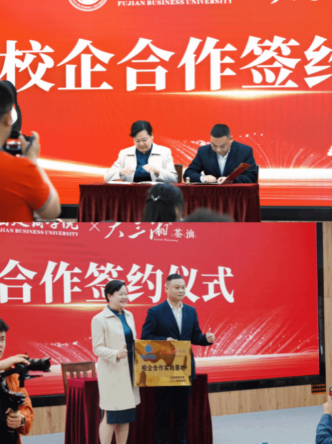随后,严谨教授代表我院同湖南大三湘茶油股份有限公司签约建立校企合作实践基地。此举旨在助力我院营销及供应链设计专才的培养,同时推动我院电商团队的组建与导入,为后续项目对接入驻京东产业学院作准备。