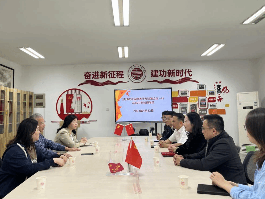 随后,双方在工商管理院会议室进行了良好交流。林立处长回顾了我院与商务厅各处室,尤其是与流通处的合作过往,对我院的科研能力和实践能力表示了认可,并表示今后愿意加强与我院的多方面交流以及深度合作。同时,建发会展王晋总经理也诚挚邀请我院师生参与福博会、中国工艺美术博览会等活动的走播工作,并表示今后愿意与我院开展全方面的人才推荐及校企合作项目,加深彼此的合作关系。陈达颖书记介绍了我院的组织机构、专业建设和校企合作的成果,提出可以配合商务厅和建发会展开展各种活动。纪孝清副院长介绍了商务厅和建发会展以往合作项目与经验,并就未来可能的合作领域提出规划。到场的各位教师也对可能的合作领域方面提出了建设性建议。