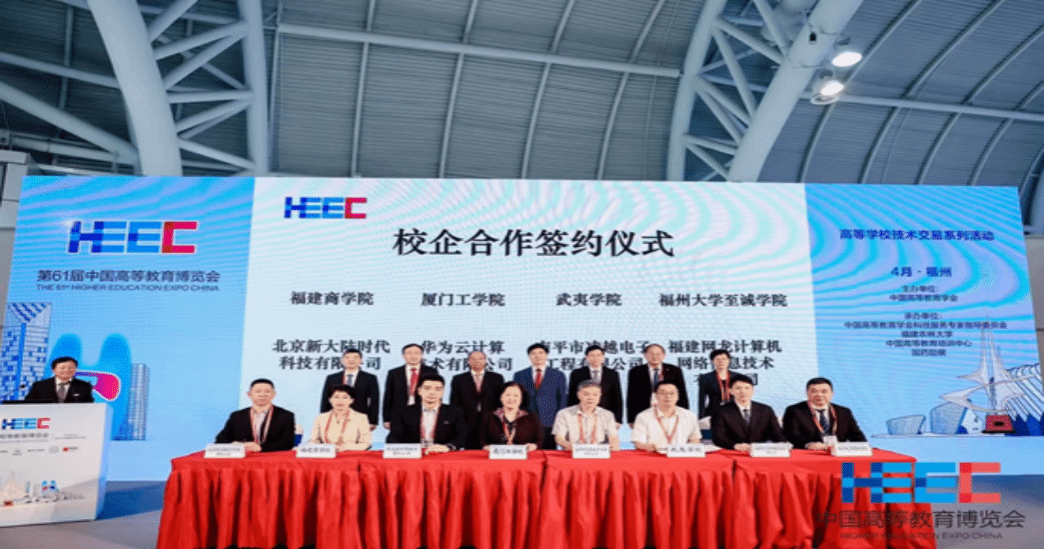 本届高博会主题活动主要由“展览展示”和“高质量学术交流活动”两大板块构成,设置两岸融合专区,举办“海峡两岸高等教育融合发展”学术活动、“台青之友”沙龙活动等,围绕教育、人才、文化等因素,强化资源统筹、项目整合,积极展示两岸融合发展成果。英国365官方网站应邀作为参展单位之一,在高等教育改革发展成果展区独立设置特色展位,并与新大陆时代科技携手共建数字商务产业学院,旨在推动教育与产业的深度融合。