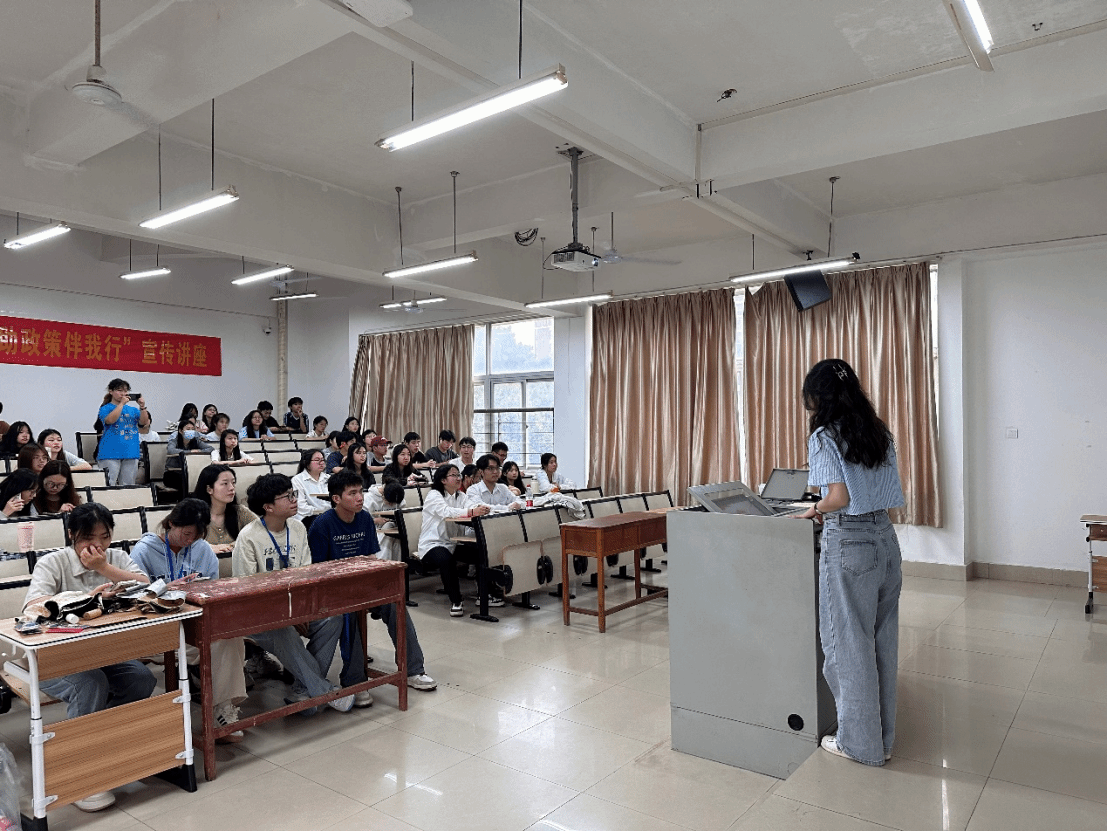 讲座伊始,资助大使张振渊同学对国家资助政策体系进行了整体介绍,并详细解读了包括国家奖学金、国家励志奖学金、国家助学金、生源地信用助学贷款、勤工俭学、临时困难补助在内的各项资助政策的申请条件、评审程序、发放标准及注意事项,确保学生对各项政策有清晰、准确的理解。