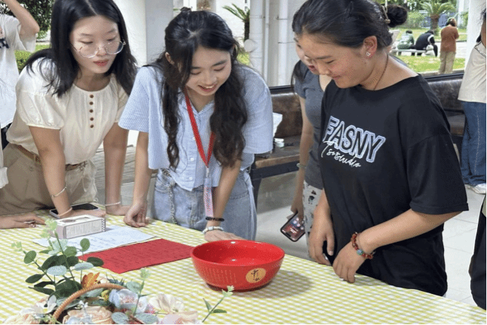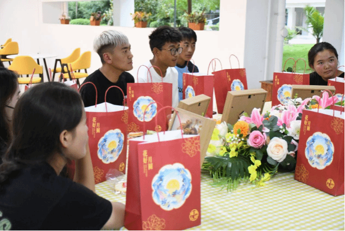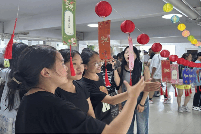 交流互动结束后,学生代表邀请少数民族同学参与中秋游园活动,与汉族同学一道体验猜灯谜、博饼等小游戏,在实践活动中感受中秋文化。最后,辅导员江美玲老师寄语各民族同学要向石榴籽那样紧紧抱成一团,相互理解、共同成长,为国家的发展和民族进步贡献出自己的智慧和力量。