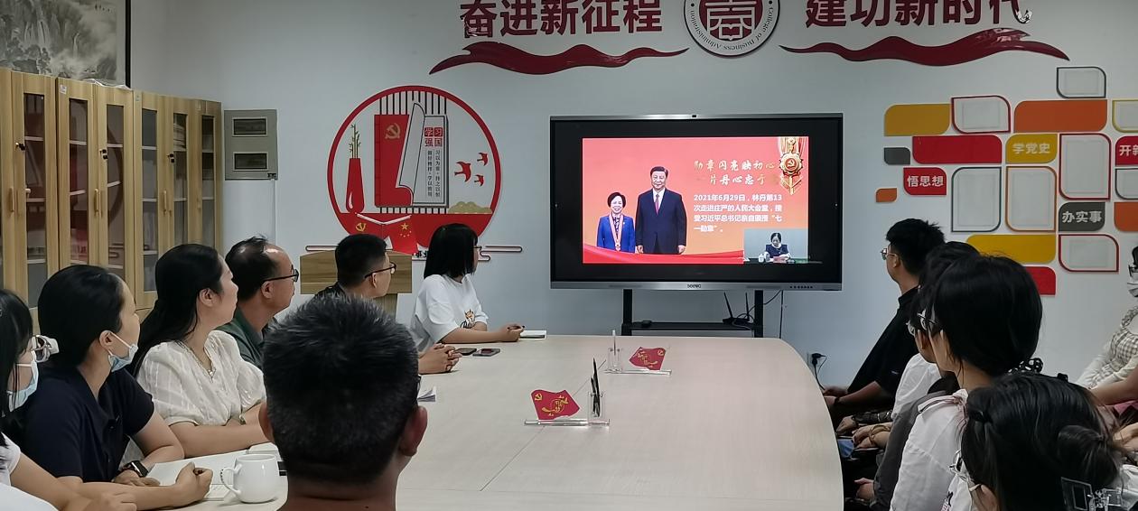观看过程中,大家专心致志,及时记录,结合学习工作实际认真思考。“七一勋章”获得者林丹书记,通过平凡朴实的语言,讲述了她从申请入党到参加福州军门社区工作50年间,创新社区治理模式的故事。观看后,辅导员表示,作为学生工作者应当学习林丹书记 “不忘初心、牢记使命”的精神,学习她“几十年如一日”的坚守精神,学习她“舍小我为大家”的奉献精神。学生党员代表认为,青年学子明确并坚定信仰,接过前辈们的接力棒,敢于担当,积极作为,为实现中华民族伟大复兴的中国梦贡献青春力量。