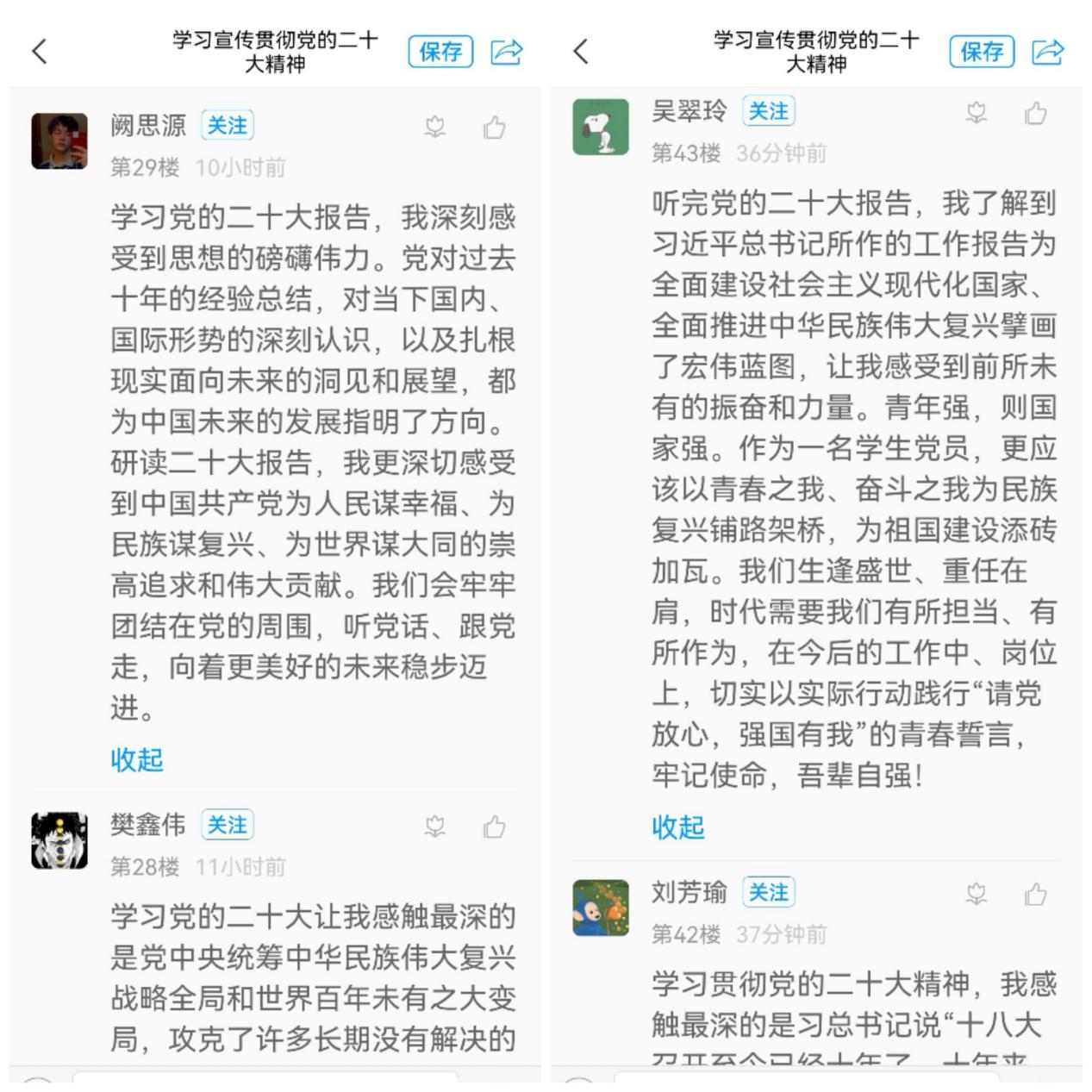 由于疫情原因,11月13日至14日,支部也灵活开通网络党课,支部所有入党积极分子通过线上学习、讨论,保证党的二十大精神及时被广大师生所掌握。学习完专题党课,支部组织所有学生参与党的二十大精神网络知识测试。