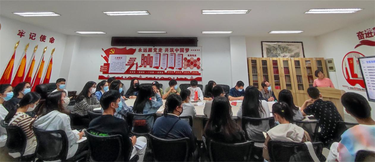 11月11日下午,支部书记在党员活动室开展学习宣传贯彻党的二十大精神专题党课。党课主要包括四个方面:一、充分认识学习宣传贯彻党的二十大精神的重大意义;二、全面准确学习领会党的二十大精神;三、党的二十大报告重要知识点;四、党的二十大报告中关于青年的重要论述。全体党员和拟发展对象现场参与学习、讨论。