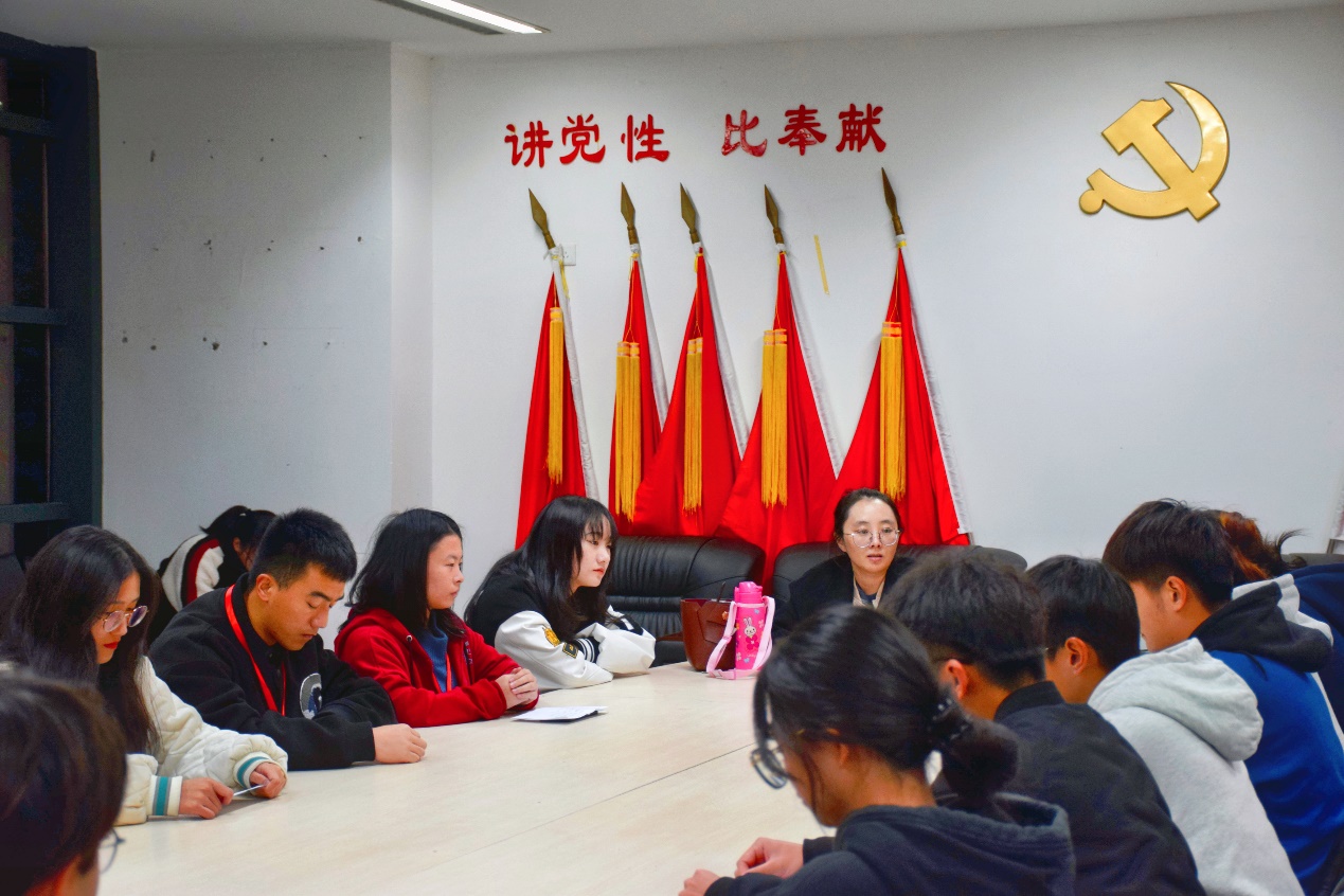 首先,在此次会中韩玉娟老师提出,身为新时代的青年应高举习近平新时代中国特色社会主义思想伟大旗帜,学习好、宣传好、贯彻好省第十一次党代会精神, 才能更好了解把握全省的发展大势、找准自身成长发展的正确路径,在全方位推进高质量发展超越的生动实践中放飞青春梦想。